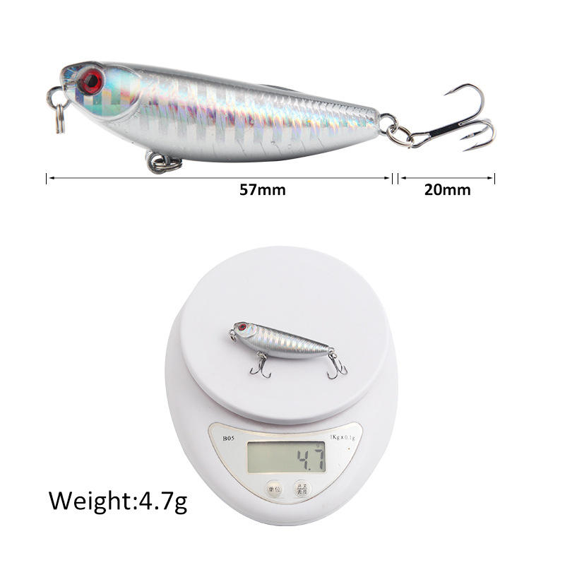เหยื่อปลอมแบบดินสอสำหรับตกปลาผิวน้ำ ขนาด 5.7 ซม. น้ำหนัก 4.7 กรัม เหมาะสำหรับตกปลาแบส