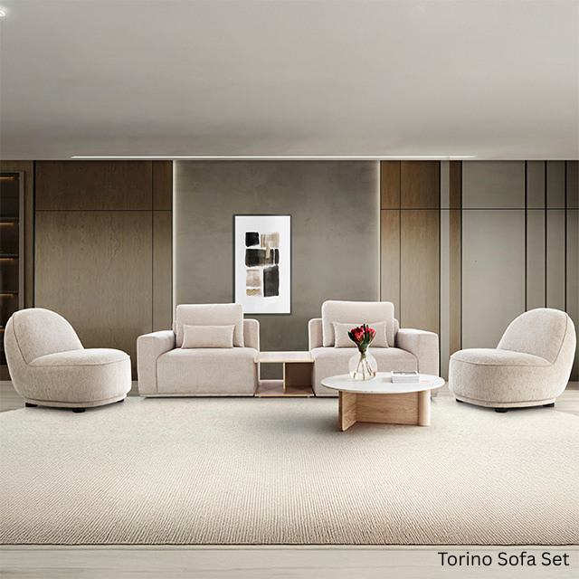 ชุดโซฟาผ้าบุคล้ายขนสัตว์ทันสมัยสไตล์ทอร์นิโน แบบโมดูลาร์ 4 ที่นั่ง พร้อมเก้าอี้โค้งหรูหราสำหรับห้องนั่งเล่น