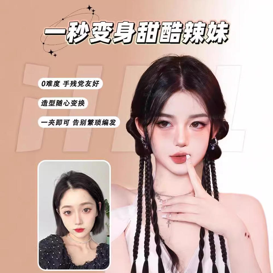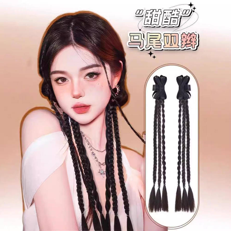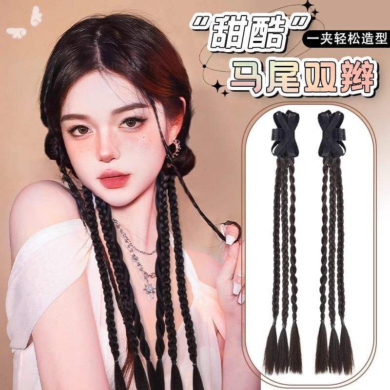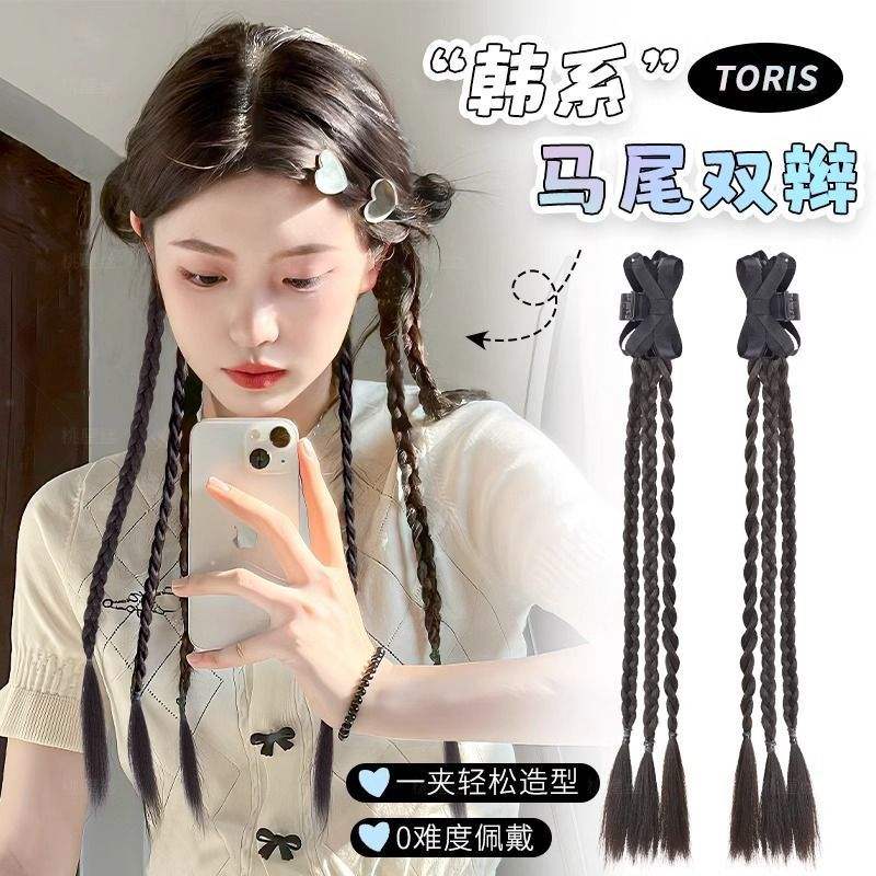 ต่อผมหางม้าถักเปียคู่แบบโทริส สไตล์ Y2K ที่ดูสมจริง ทำด้วยมือด้วยลวดทนความร้อนสูงเพื่อการจัดแต่งทรงผมที่ง่ายดาย