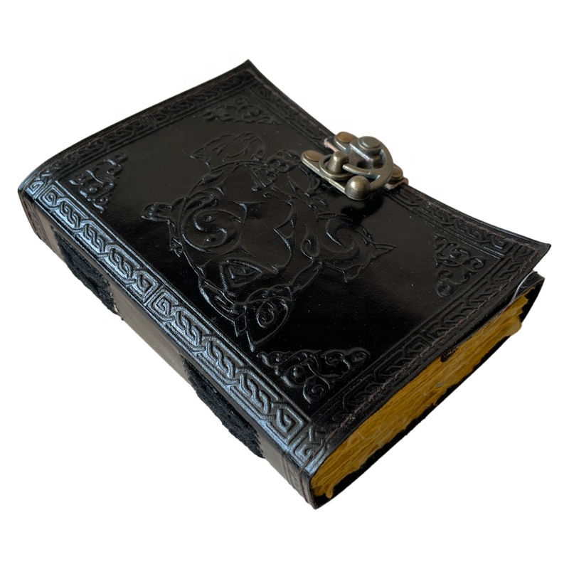 สมุดบันทึกปกแข็งแบบสันห่วงหนังแท้ทำมือ ลายเต่า สีดำ ของขวัญสไตล์วินเทจ สมุดวาดเขียน อุปกรณ์สำนักงาน
