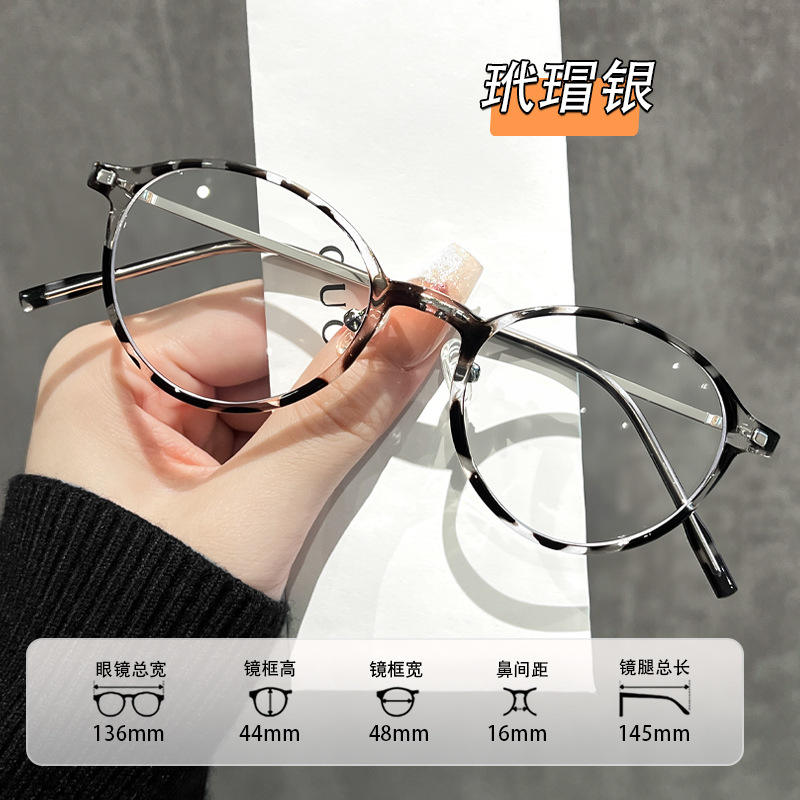 กรอบแว่นตาทรงกลมสีเงินลายกระดองเต่า 11410 กรอบแว่นตาป้องกันแสงสีฟ้าสำหรับผู้หญิงหน้าเล็กน้ำหนักเบาเป็นพิเศษ