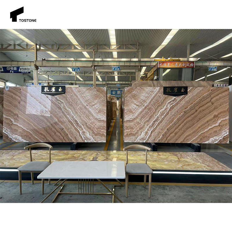 TOstone แผ่นหินอ่อนนกยูงสีแดงสีขาวแปลกใหม่แผ่นขัดสำหรับการออกแบบในร่มในห้องนั่งเล่นห้องครัวห้องน้ำ