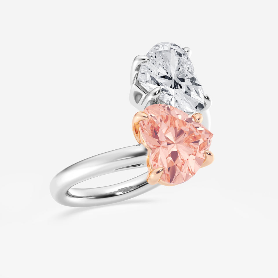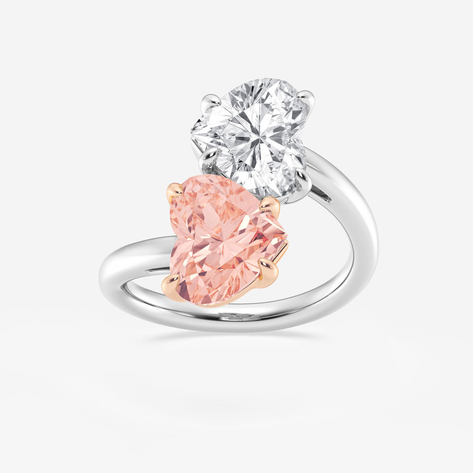 แหวนเพชรทรงหัวใจสีชมพูและสีขาวแฟนซี 6 กะรัต ผลิตในห้องปฏิบัติการ ตัวเรือนทองคำขาว 18k แหวนหมั้นสำหรับเธอ (แบบ toi et moi)