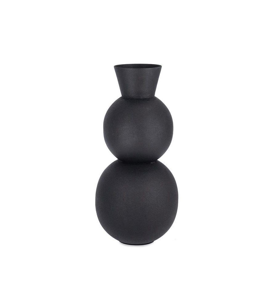แจกันโทเท็มสีดำด้าน | กระถางดอกไม้โลหะทรงกลมทำมือ | แจกันศิลปะนอร์ดิกแบบนามธรรมสำหรับดอกไม้แห้ง | แจกันตั้งโต๊ะ