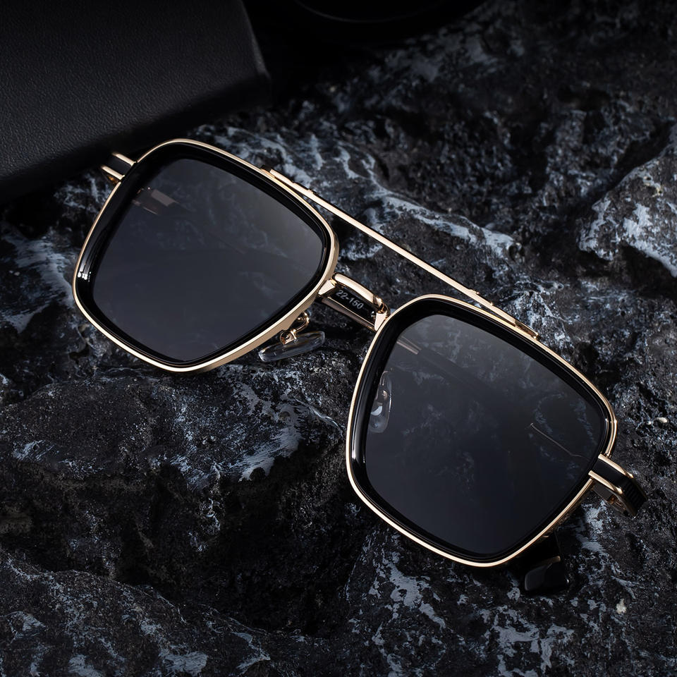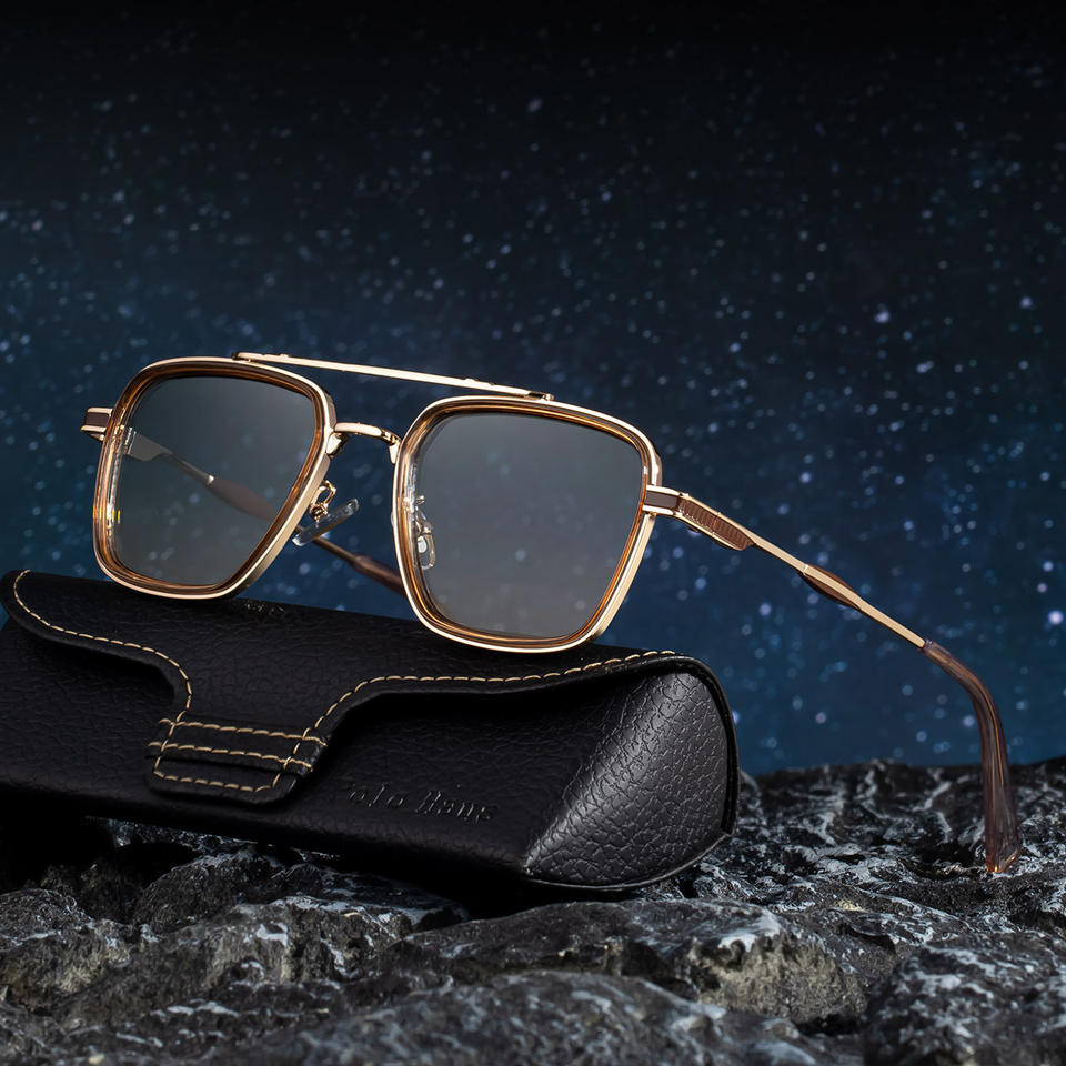 โทโต้ แฮนค์แว่นกันแดดทรงสี่เหลี่ยมสำหรับผู้ชาย UV400 เลนส์พีซีสีทองสีดำย้อนยุคสะพานคู่ป้องกันแสงแดดกลางแจ้ง