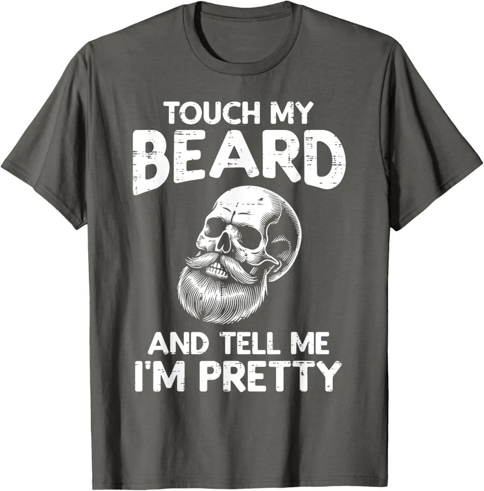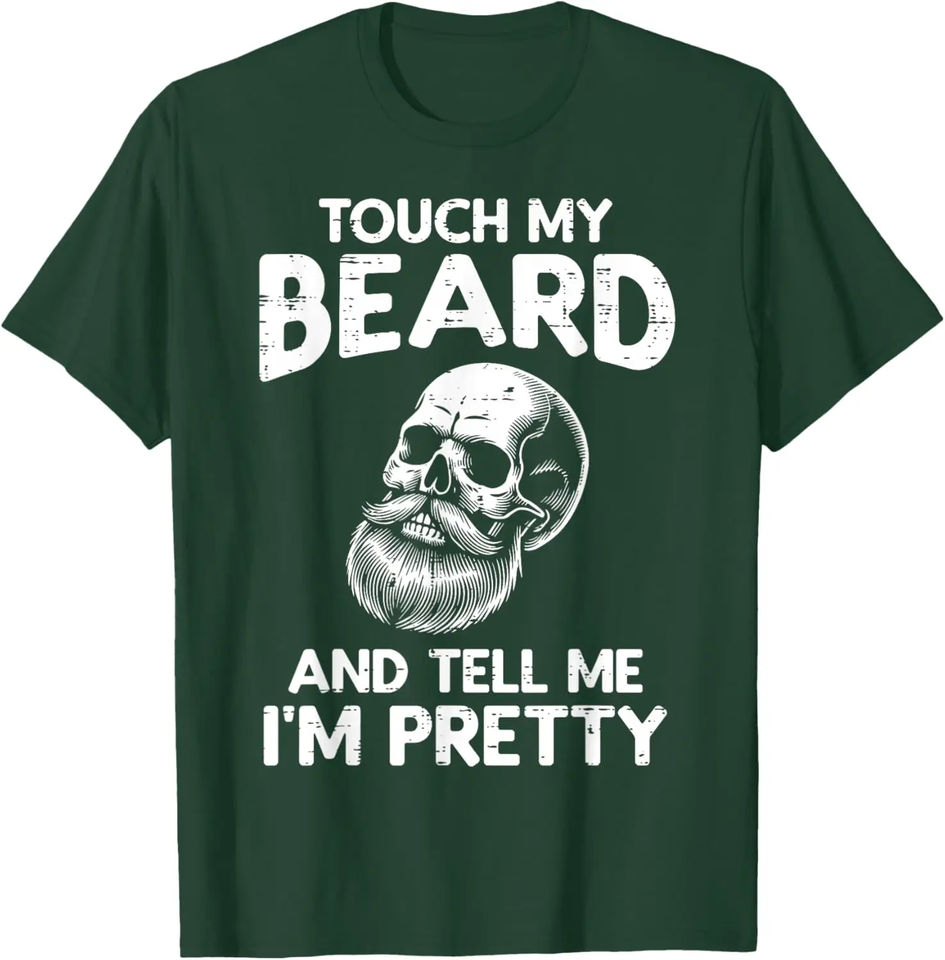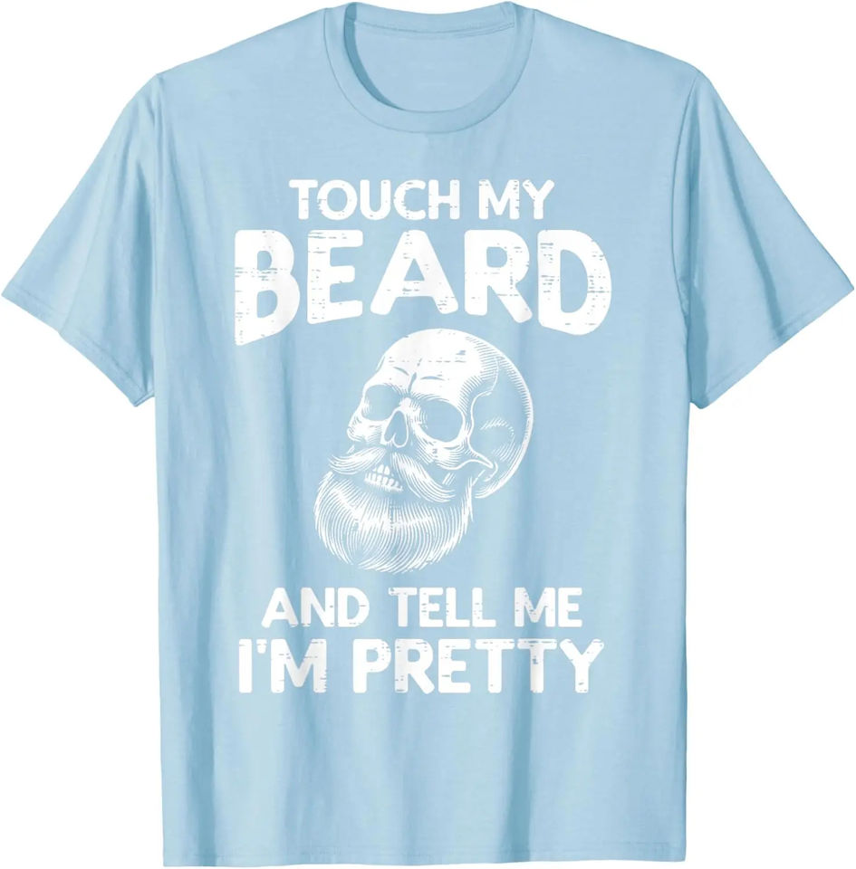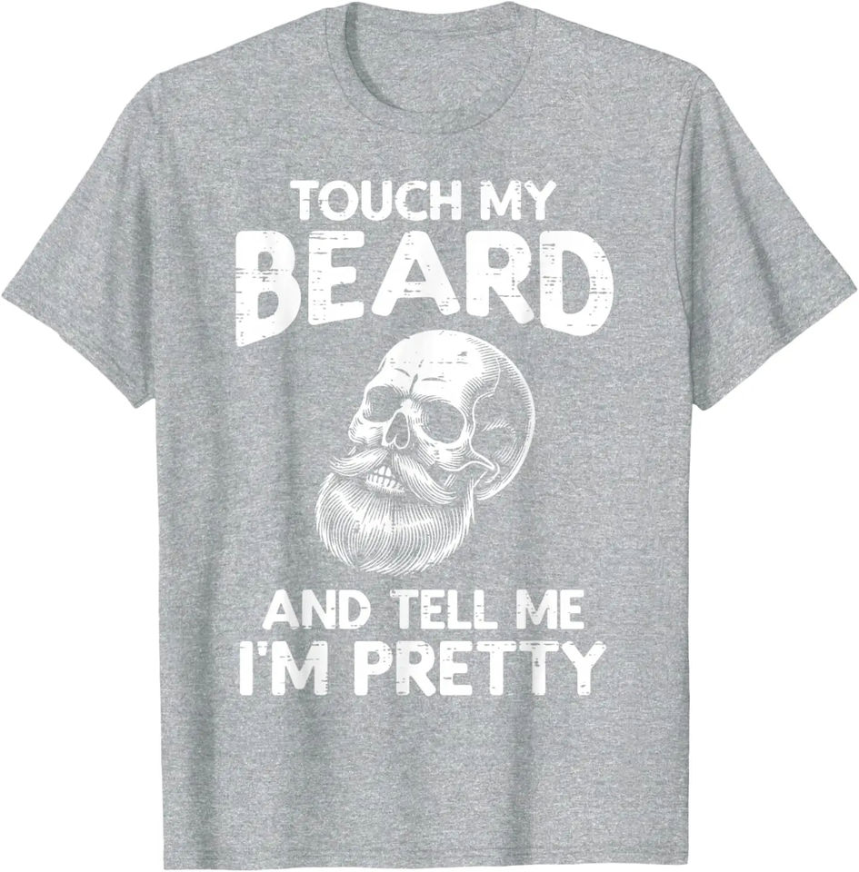 สัมผัสเคราของฉัน บอกฉันว่าฉันสวย เสื้อยืดผ้าฝ้ายลายกราฟิกกะโหลกสำหรับผู้ชาย เสื้อยืดแขนสั้นลำลอง
