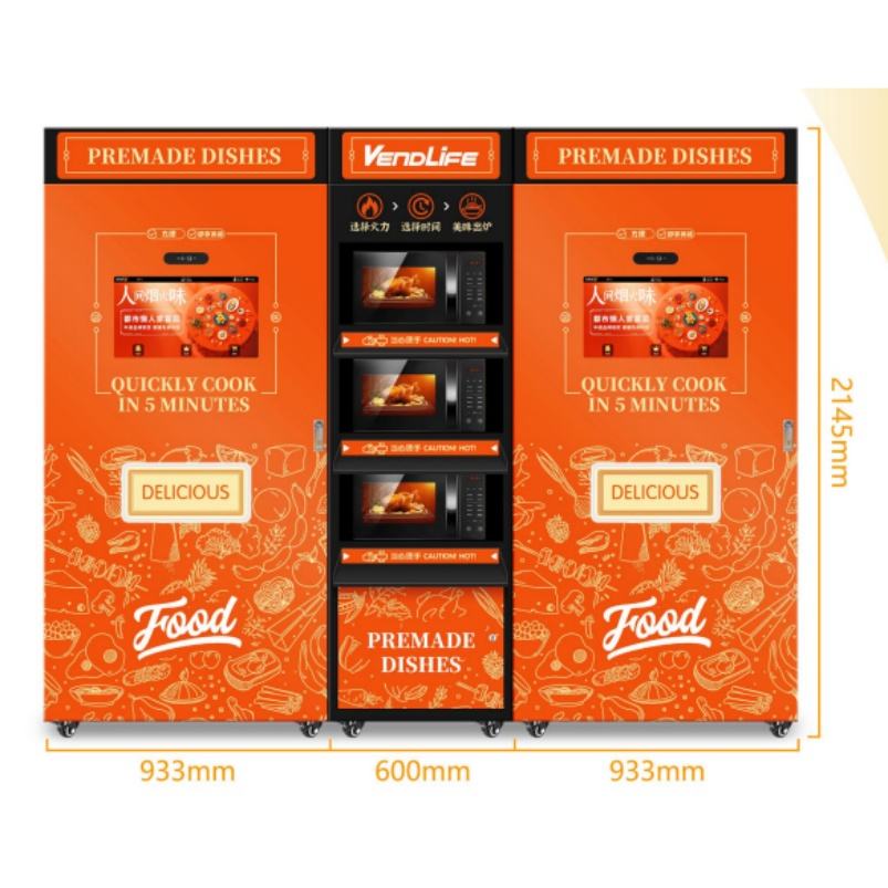 ตู้จำหน่ายอาหารแช่แข็งแบบอัตโนมัติเครื่องจำหน่ายอาหารแบบหน้าจอสัมผัสพร้อมเตาอบไมโครเวฟ