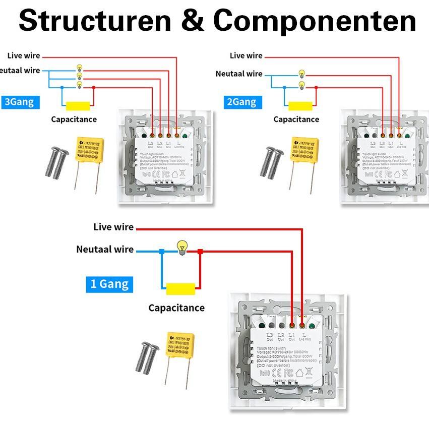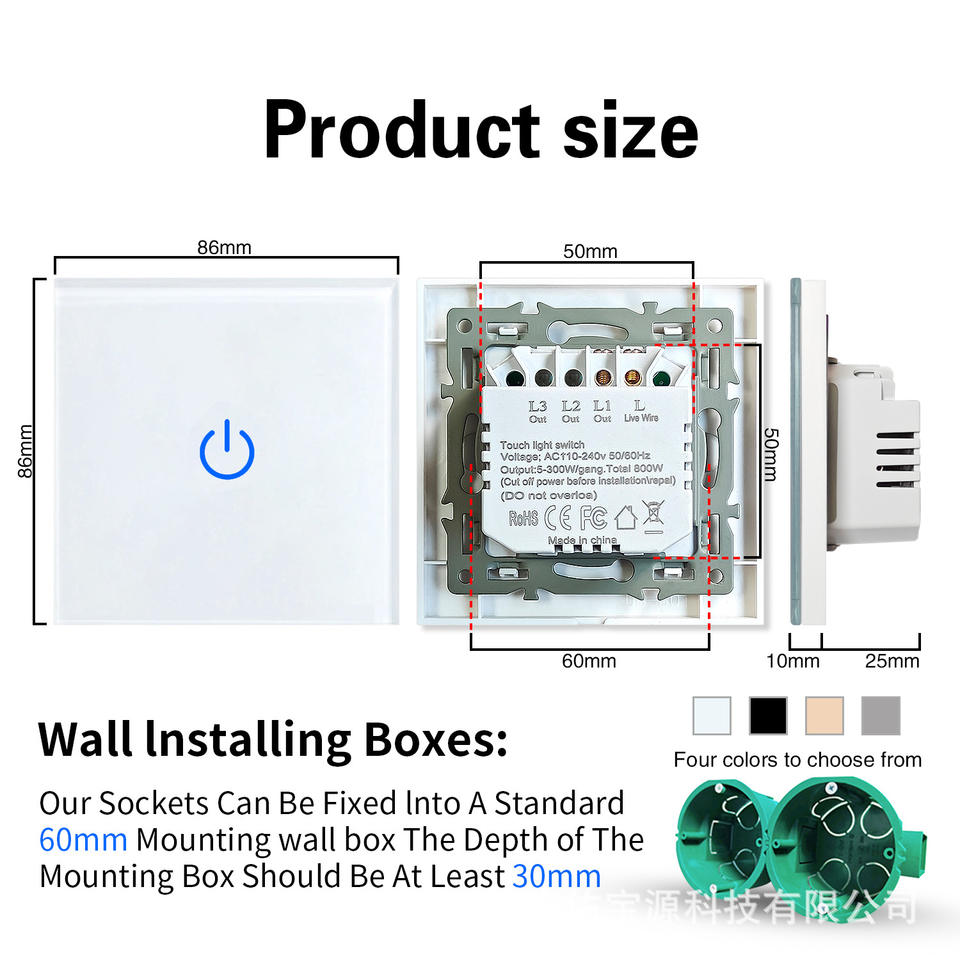 สวิตช์สัมผัสกระจกนิรภัย 86 มม. ควบคุมด้วยสายเดี่ยว ติดตั้งแบบซ่อนพร้อมขายึดเหล็ก สวิตช์เซ็นเซอร์