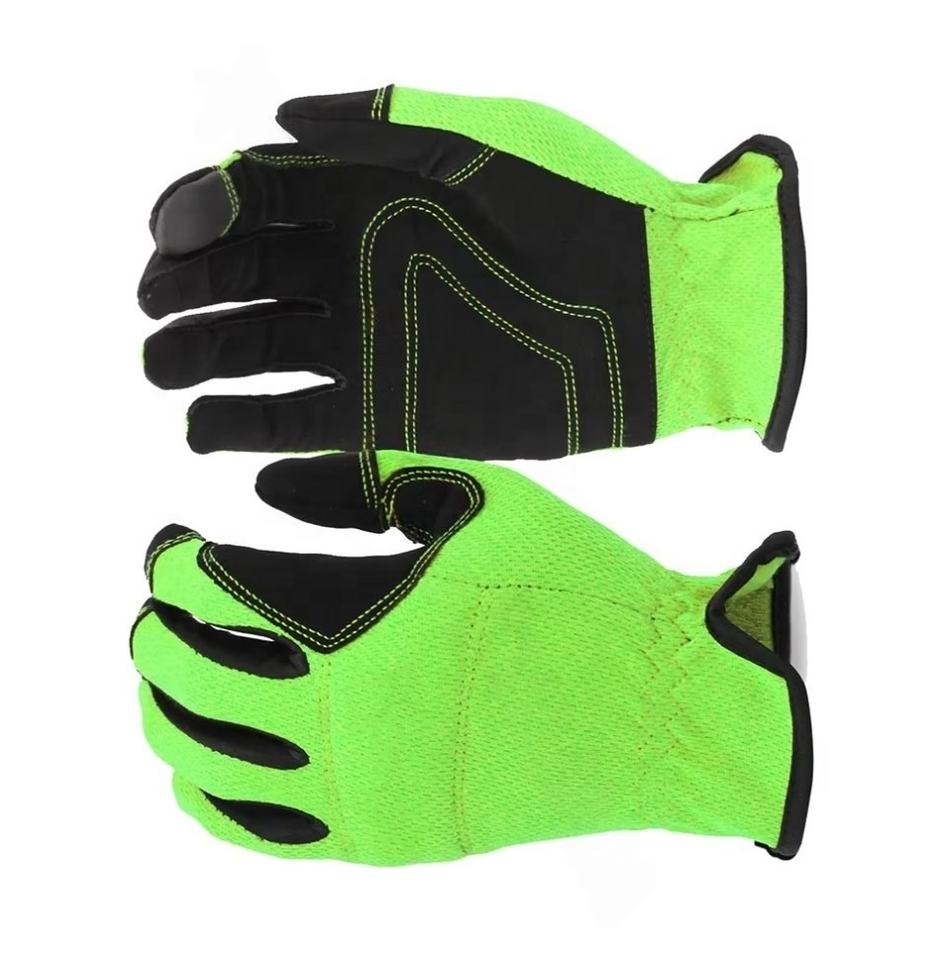 ถุงมือช่างระบบสัมผัส,ถุงมือหนังสังเคราะห์พรีเมี่ยมพร้อมมะนาวสีเขียวสแปนเด็กซ์และถุงมือเซฟตี้แพทช์โฟมดำปาล์ม