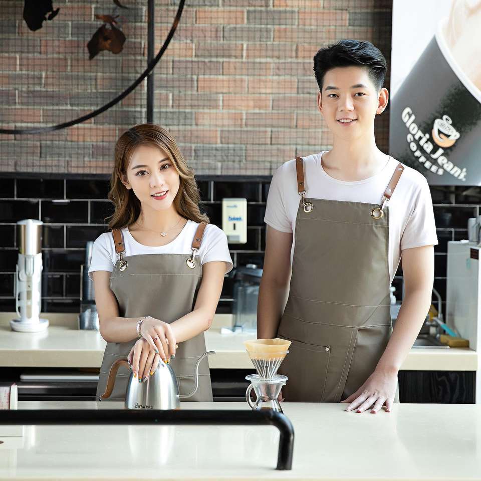 ชุดเครื่องแบบเครื่องแบบช่างเสริมสวยสำหรับพนักงานจัดเลี้ยงผ้ากันเปื้อนพิมพ์โลโก้ฟรีกันน้ำ