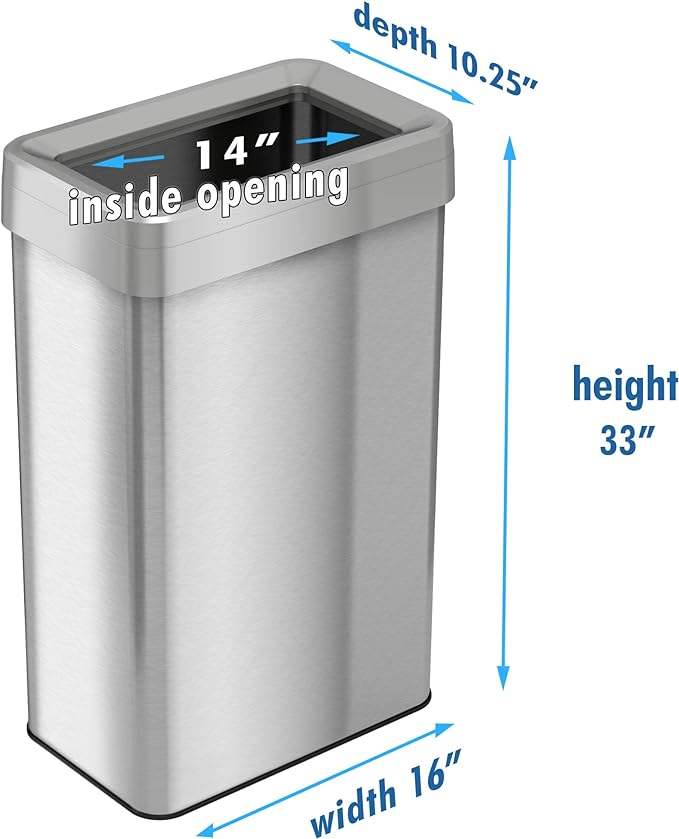 ถังขยะสี่เหลี่ยมแบบเปิดแบบไม่มีสัมผัส 21 แกลลอนสแตนเลสเกรดเชิงพาณิชย์กําจัดกลิ่นคู่