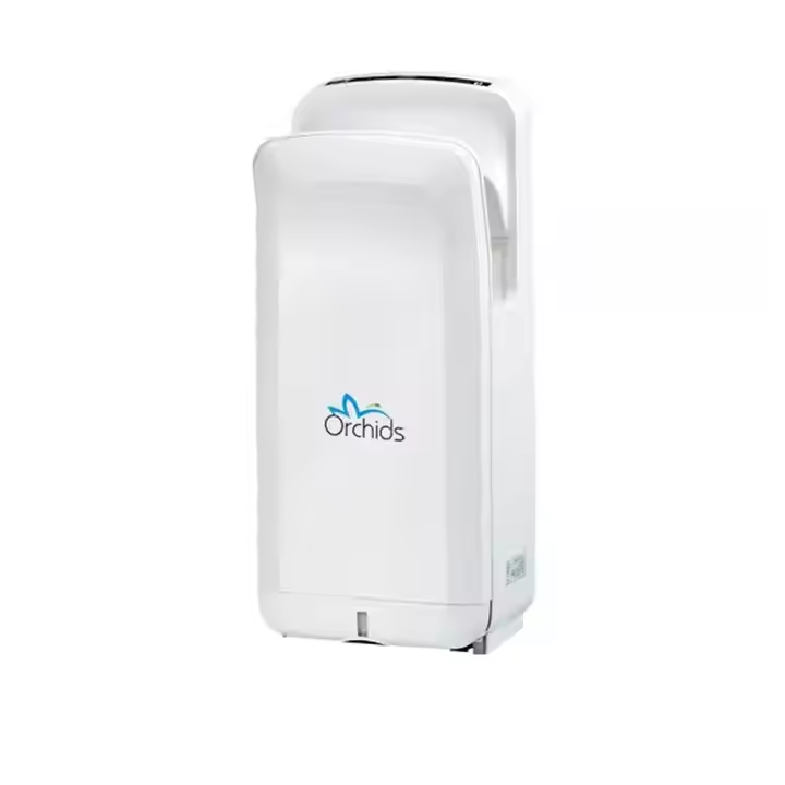 เครื่องเป่ามืออัตโนมัติแบบไร้สัมผัสดีไซน์ติดผนังพร้อมตัวเครื่องพลาสติก ABS สำหรับห้องน้ำและห้องน้ำเชิงพาณิชย์ใช้พลังงานอย่างมีประสิทธิภาพ