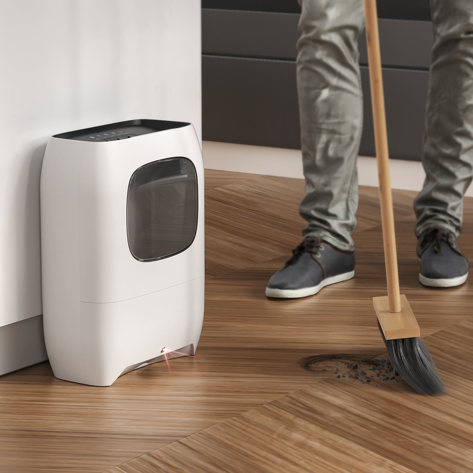 ที่ตักผงอัตโนมัติสูญญากาศแบบไร้สัมผัสประสิทธิภาพสูงสำหรับร้านเสริมสวยขนสัตว์เลี้ยงอาหารฝุ่นในครัว