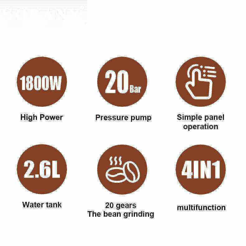 Brew ระบบ, ปรับเครื่องบดการตั้งค่า, ระบบน้ำร้อน, Single Service, หน้าจอสัมผัส, เอสเปรสโซร้อน, เอสเปรสโซ่ เย็น, น้ำร้อน, ไอน้ำ, อุณหภูมิควบคุมฟังก์ชัน