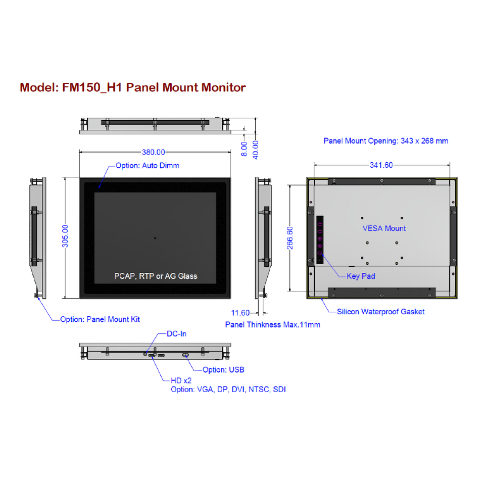วิดีโอใน:HDMI ตัวเลือก: VGA / DP / DVI / HD-SDI / BNC