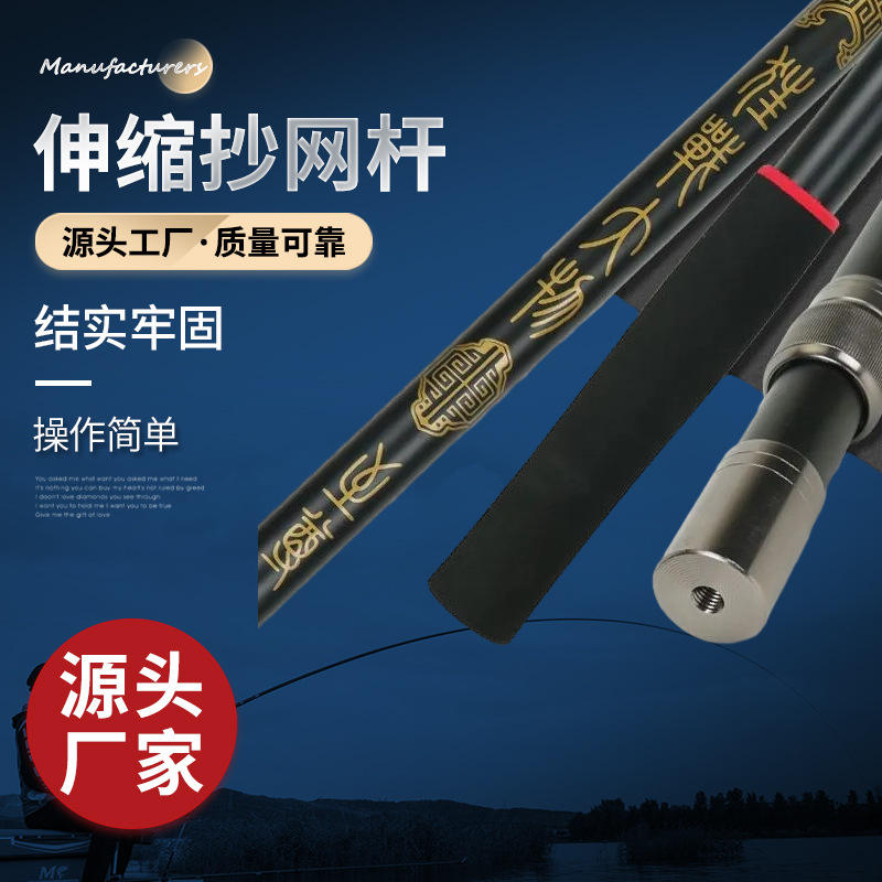 Tough Telescopic Landing Net Pole 2.1 Meters Stainless Steel High Strength Black Large Scale Fishing Net Rod