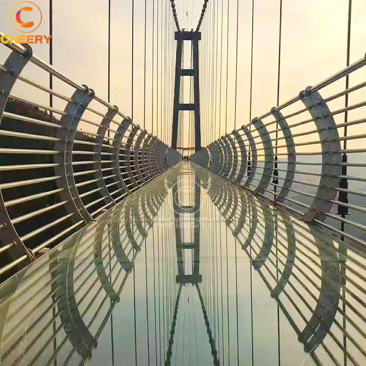 ทางเดินลอยฟ้ากลางแจ้งในแหล่งท่องเที่ยวภูเขา พร้อมพื้นกระจกและสะพานลอยฟ้า พร้อมเอฟเฟกต์การระเบิด