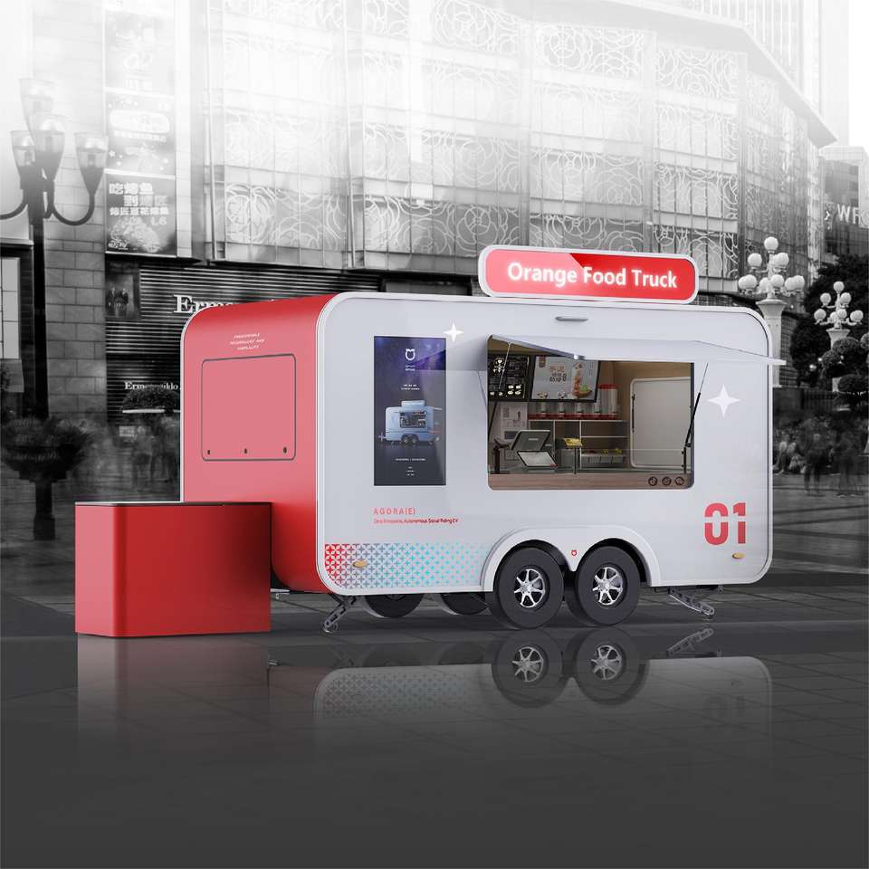 รถพ่วงขายชานมไข่มุกและเครป - ป้ายเมนู LED + ที่นั่งกลางแจ้งสำหรับการดำเนินงานตลาดกลางคืน