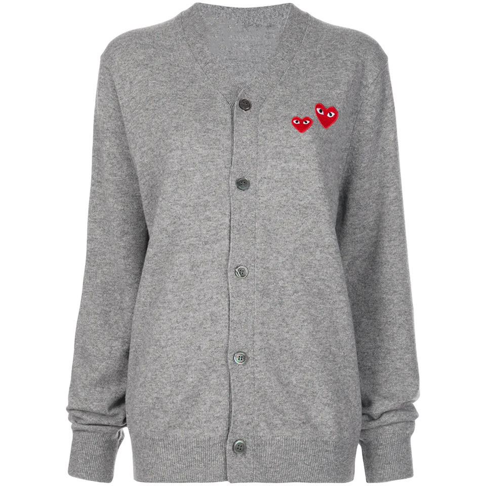 เสื้อคาร์ดิแกนไหมพรมทาวน์คานา แบบยูนิเซ็กส์ คอวี ติดกระดุมรูปหัวใจ สไตล์ลำลอง สวยหรู สำหรับฤดูใบไม้ร่วงและฤดูหนาว เหมาะสำหรับเดินทาง ผ้าหนา มีโลโก้ด้านหน้า สำหรับคู่รัก