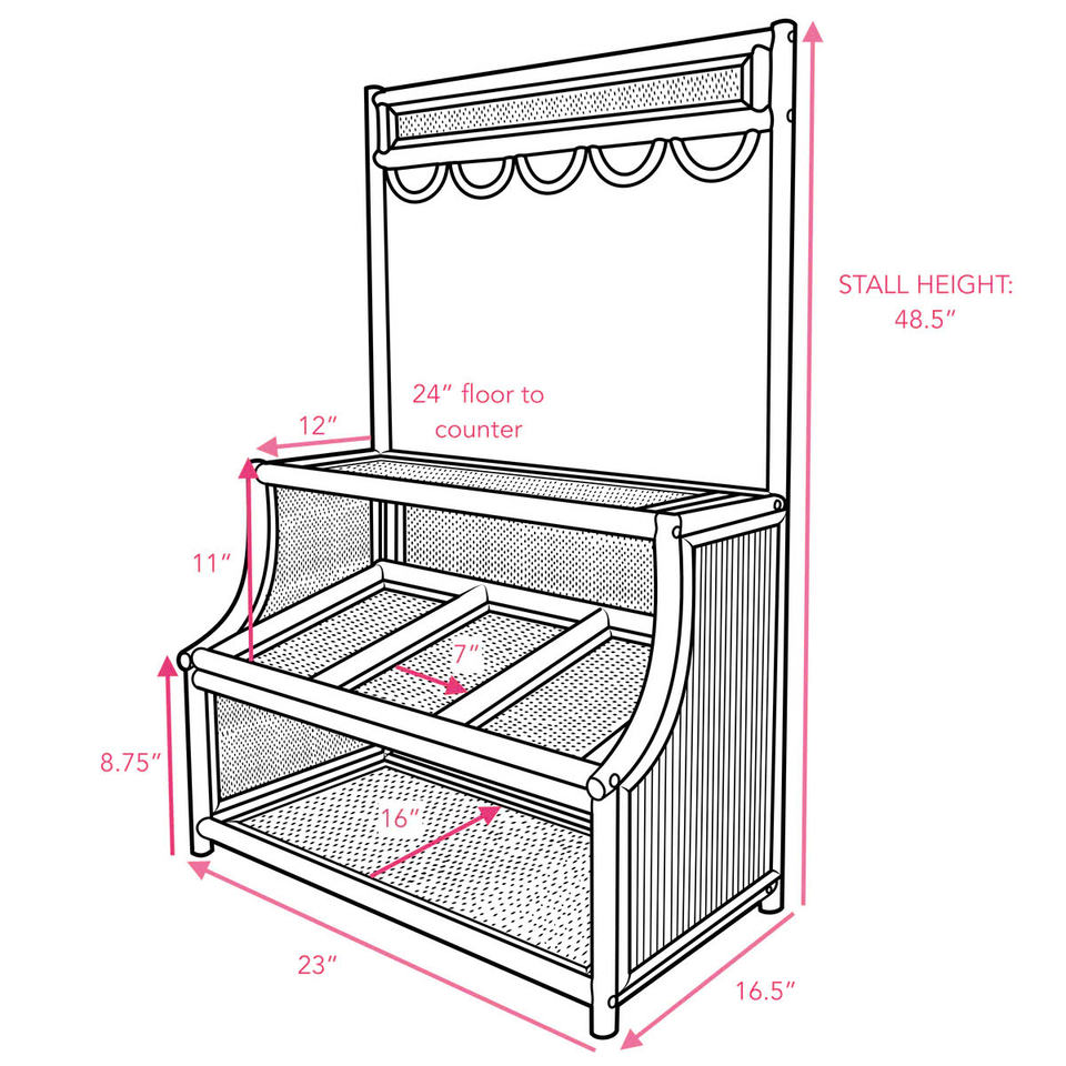 Toy Counter, Vegetable Counter made of Rattan for children, Food cart with black chalkboard, Product display shelf for kid