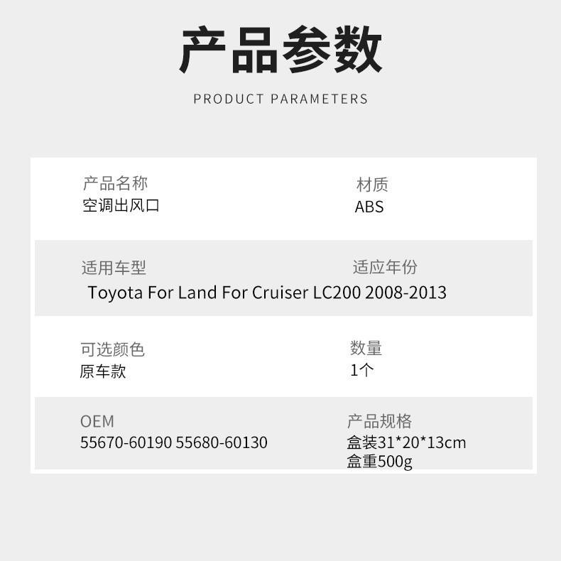 Toyota Land Cruiser Center Air Vent Covers 55670-60190 55680-60130 ABS Clip On For 2008-2013 LC200