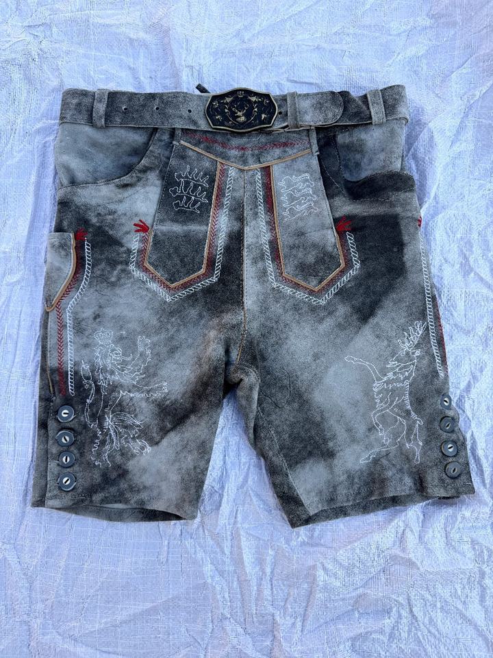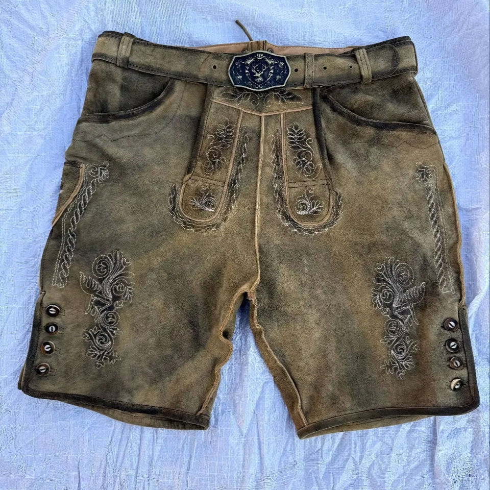 กางเกงหนังแท้สไตล์ชนเผ่าบาวาเรียนสำหรับผู้ชาย ขายส่ง กางเกงหนังแท้สไตล์ชนเผ่าสำหรับเทศกาลอ็อกโทเบอร์เฟสต์ กางเกงหนังขาสั้น