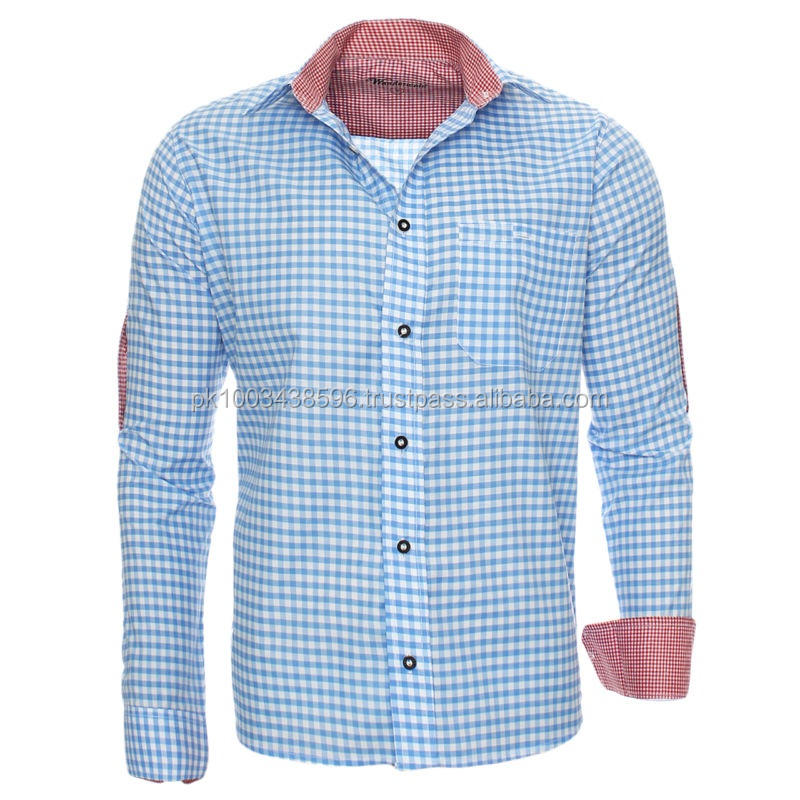 Trachten Hemden เสื้อเชิ้ตเยอรมันดั้งเดิม,เสื้อผู้ชายบาวาเรีย Oktoberfest Hemden เสื้อเชิ้ตแขนยาวผ้าฝ้าย100%