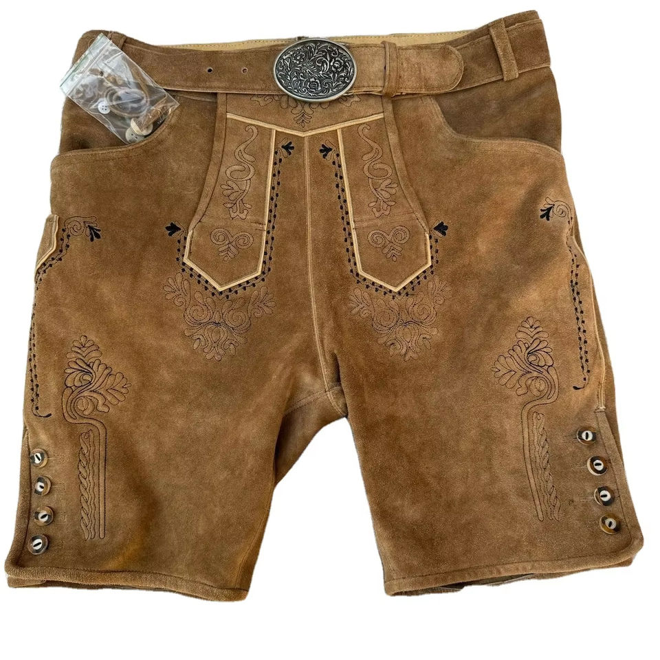 Trachten กางเกง lederhose/trachten Bavarian lederhosen หนังแท้สั้นสำหรับผู้ชาย