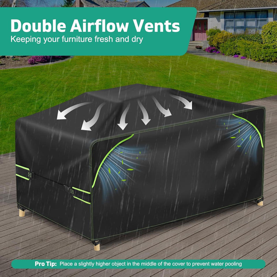 Tracing Rectangular Patio Furniture Cover 420D Oxford Cloth Waterproof UV Resistant Tie Down System