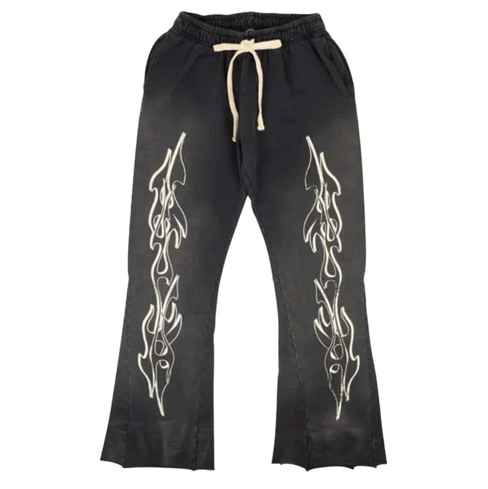 กางเกงวอร์ม Track Jogger Stacked Pant ผ้าฟลีซหนา 500 GSM ผ้าฝ้าย 100% ทรงหลวม พิมพ์โลโก้ ขาบาน สไตล์ลำลอง เป็นมิตรกับสิ่งแวดล้อม สำหรับผู้ชาย