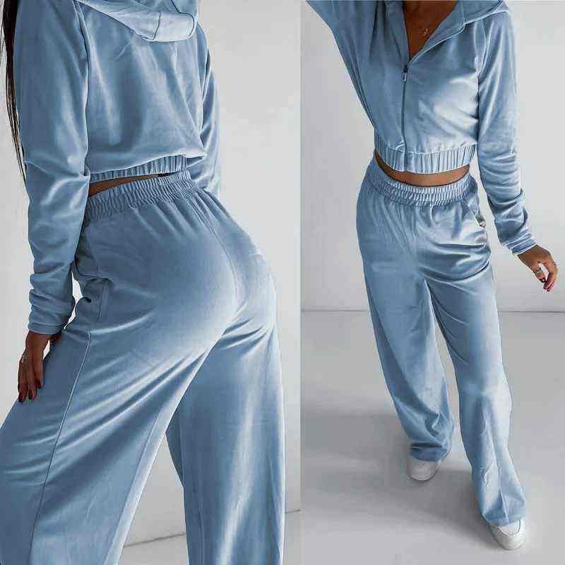 ชุดวอร์มผู้หญิงแฟชั่นทรงเข้ารูป ชุดออกกำลังกายผ้าฝ้ายกำมะหยี่ ชุดวอร์มผู้หญิงแบบเรียบง่าย เสื้อครอปมีฮู้ด