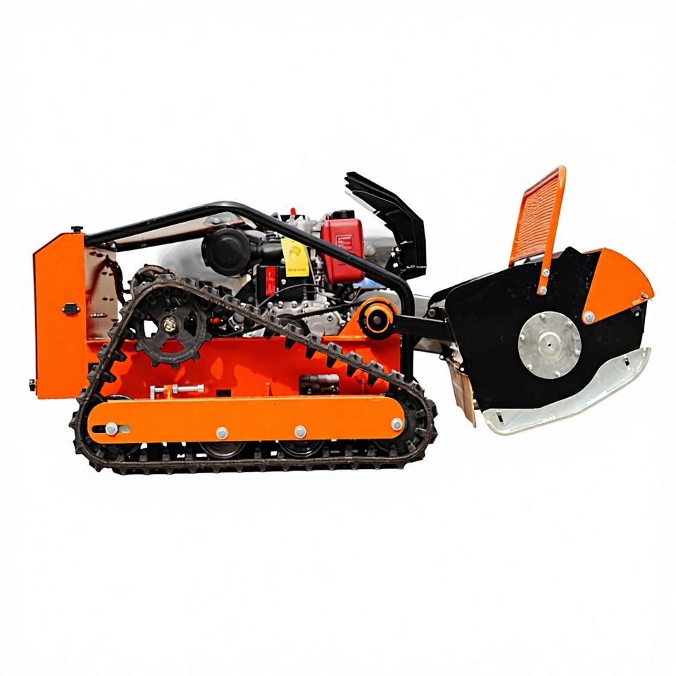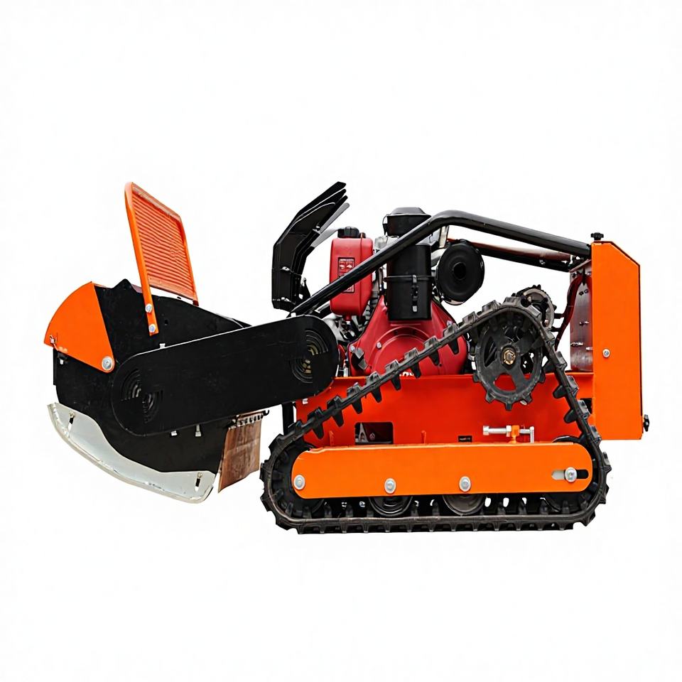 เครื่องตัดหญ้าแบบไร้สายสำหรับงานอุตสาหกรรม แบบติดตั้งบนรถตีนตะขาบ สำหรับงานหนัก ใช้ตัดหญ้าบนพื้นที่ลาดชัน สวน ไร่นา และงานกำจัดวัชพืช