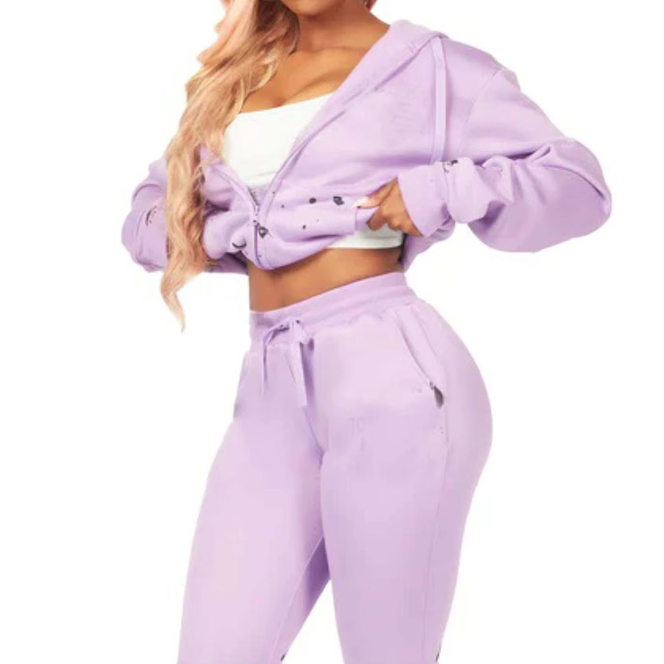 ชุดวอร์ม2ชิ้นของผู้หญิงเซ็ตเสื้อฮู้ดกันกางเกงผ้าคอตตอนผ้าฟลีซ100%