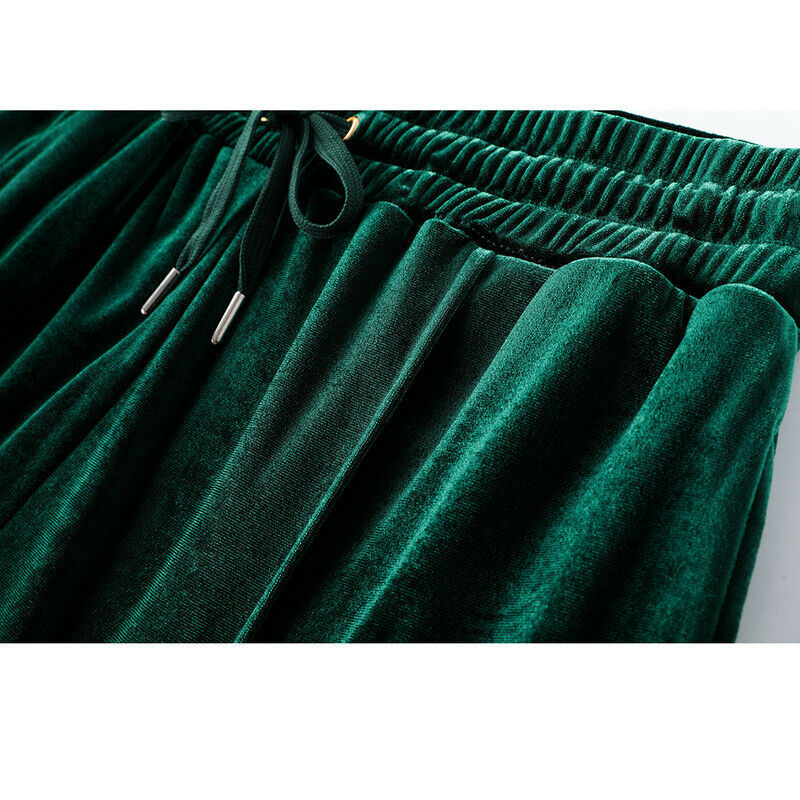 ชุดวอร์ม2ชิ้นชุดวอร์มผ้ากำมะหยี่เข้ารูปมีฮู้ดลายทางสีดำ