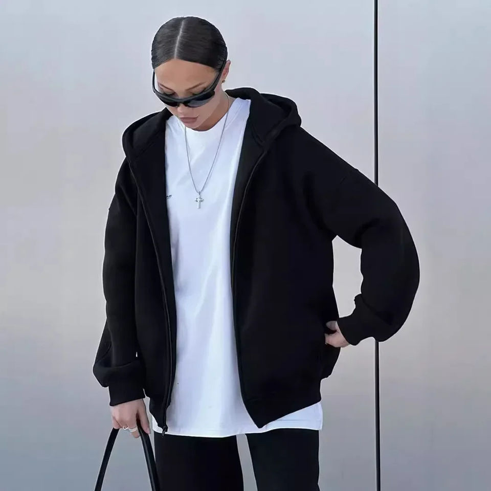 เสื้อฮู้ดซิปคุณภาพสูงสำหรับฤดูหนาว ผลิตจากผ้าฝ้าย 100% แบบเรียบ สวมใส่ได้ทั้งชายและหญิง พร้อมโลโก้แบบกำหนดเอง