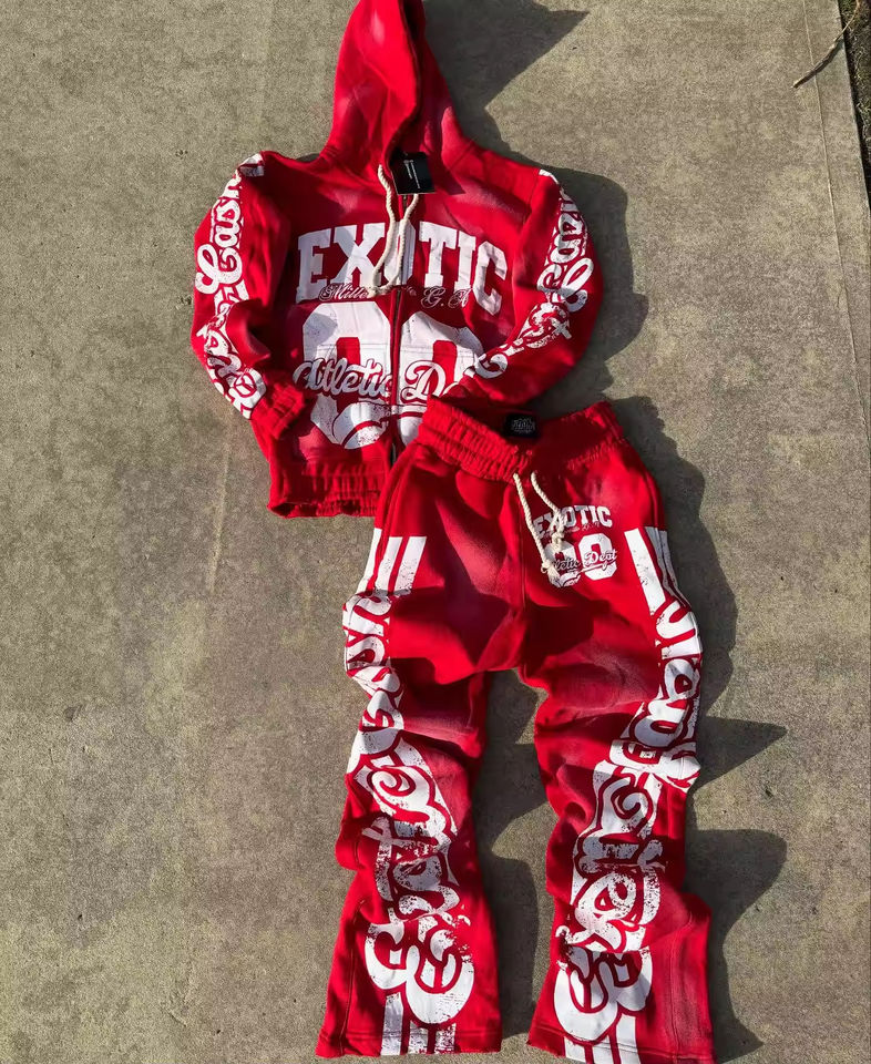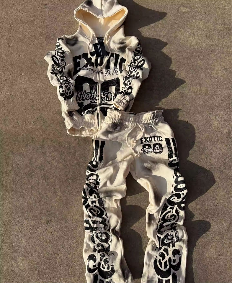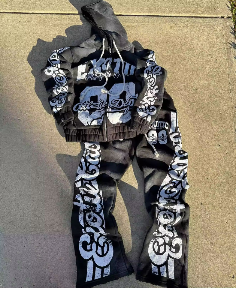 ชุดเซ็ตแทรคสูทผู้ชายแบบมีฮู้ด พิมพ์ลาย ไซส์ใหญ่ 2 ชิ้น สำหรับฤดูหนาว รักษ์โลก สไตล์ฮิปฮอป ลำลอง แฟชั่น เนื้อผ้าหนา ระบายอากาศได้ดี