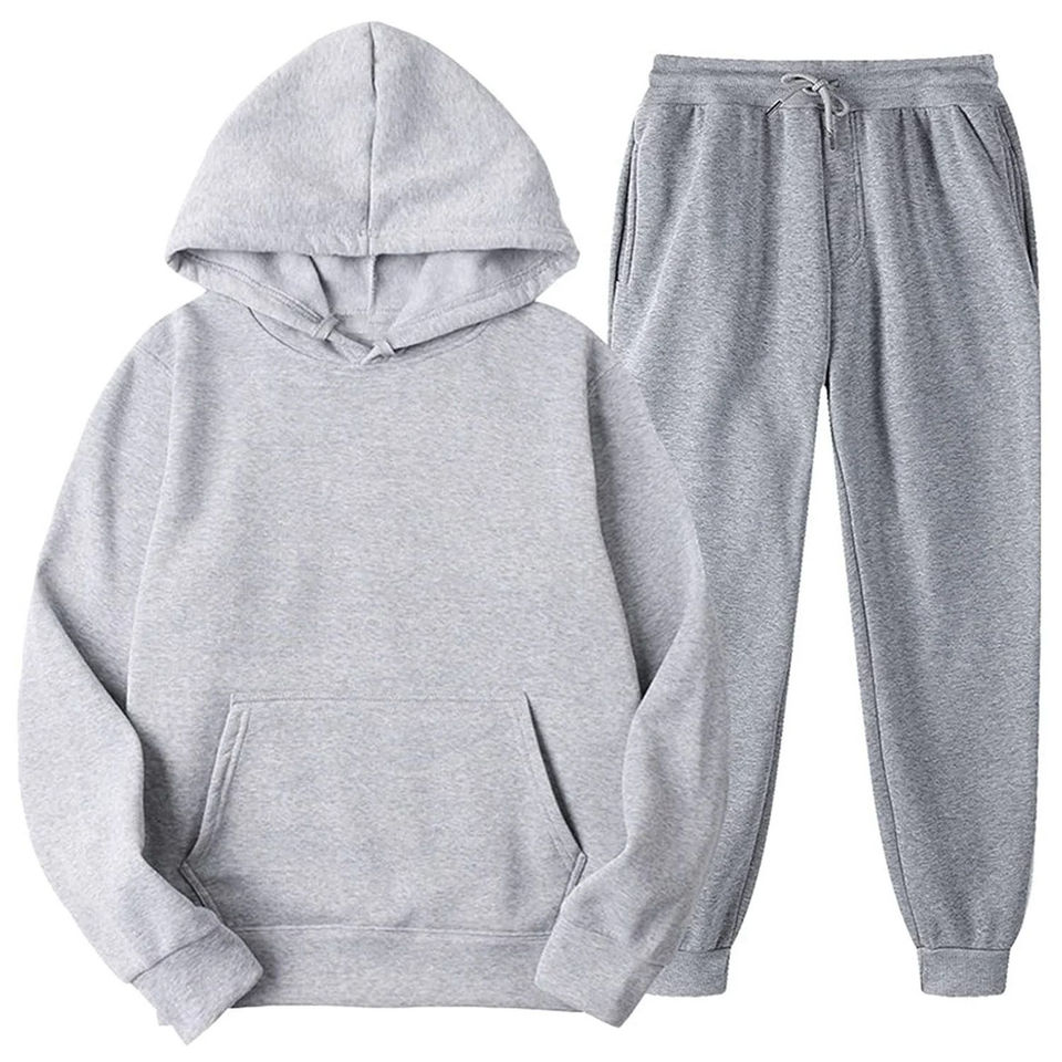 ชุดวอร์มมีฮู้ดสำหรับผู้ชายกางเกงสเวตเชิ้ตมีฮู้ดแบบสวมหัวชุดกีฬาชุดกีฬาลำลองสำหรับผู้ชายชุดเสื้อสเวตเตอร์และชุดเสื้อฮู้ด
