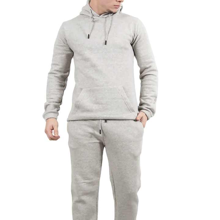 ชุดวอร์มผู้ชาย เสื้อฮู้ดและกางเกงขายาว สำหรับออกกำลังกาย วิ่งจ๊อกกิ้ง ชุดกีฬาสองชิ้น รับผลิตแบบ OEM ระบายอากาศได้ดี