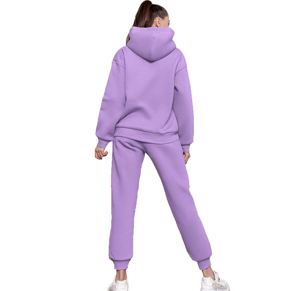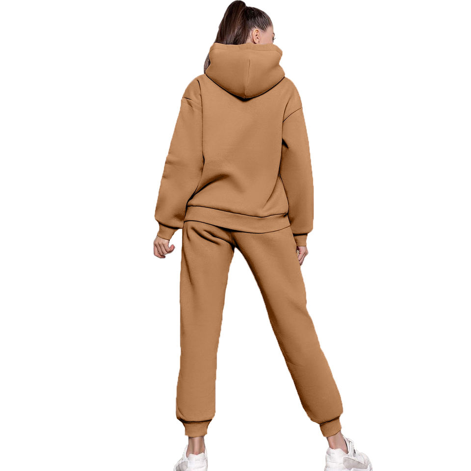 เซ็ตชุดวอร์มแบบสวมหัวมีฮู้ดและกางเกงวอร์มสำหรับวิ่งชุดวอร์มผ้าฟลีซสองชิ้นสำหรับผู้หญิงเสื้อผ้าฤดูใบไม้ร่วง