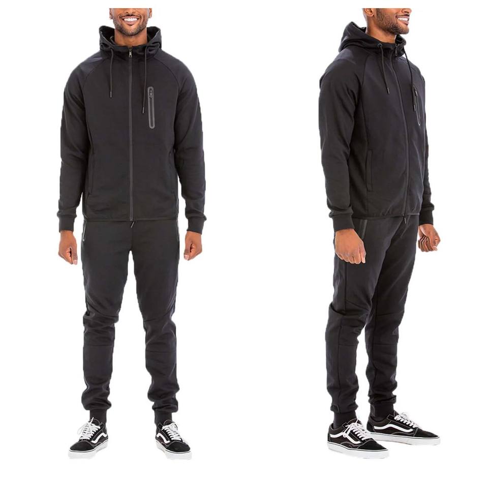 เสื้อแจ็กเก็ตเล่นฟุตบอลพร้อมกางเกงลายทางดีไซน์ยอดนิยมชุดวิ่งจ๊อกกิ้งแบบสั่งทำมีซิปคอปก