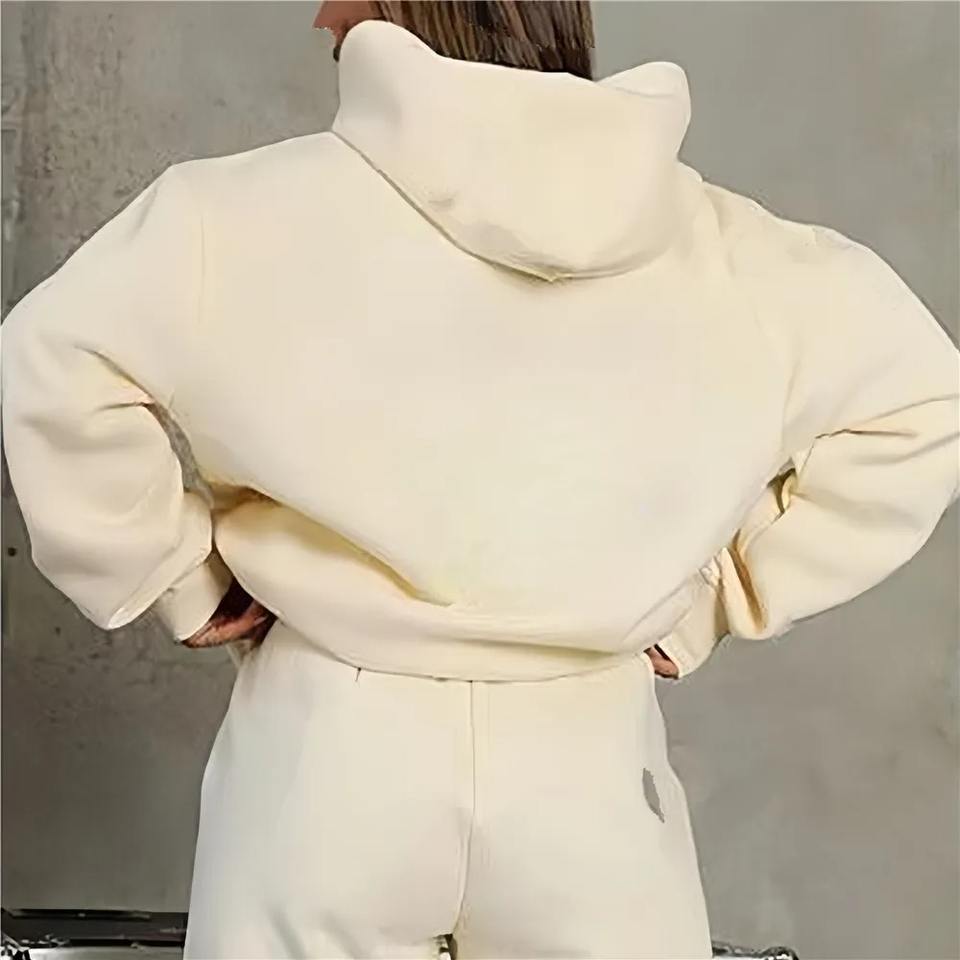 ชุดวอร์มผู้หญิงมีฮู้ดเสื้อแขนยาวผ้าฝ้ายแบบสวมหัวมีฮู้ดชุดวอร์ม MS-JG-1195แบบหลวม