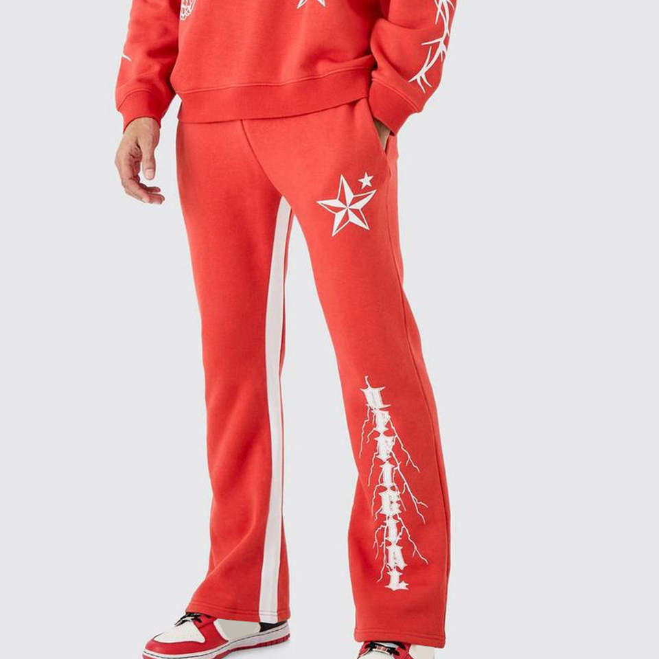 ชุดวอร์มสำหรับผู้ชายชุดวอร์มกางเกงทรงหลวมพิมพ์ลายบนหน้าจอแบบกำหนดเอง