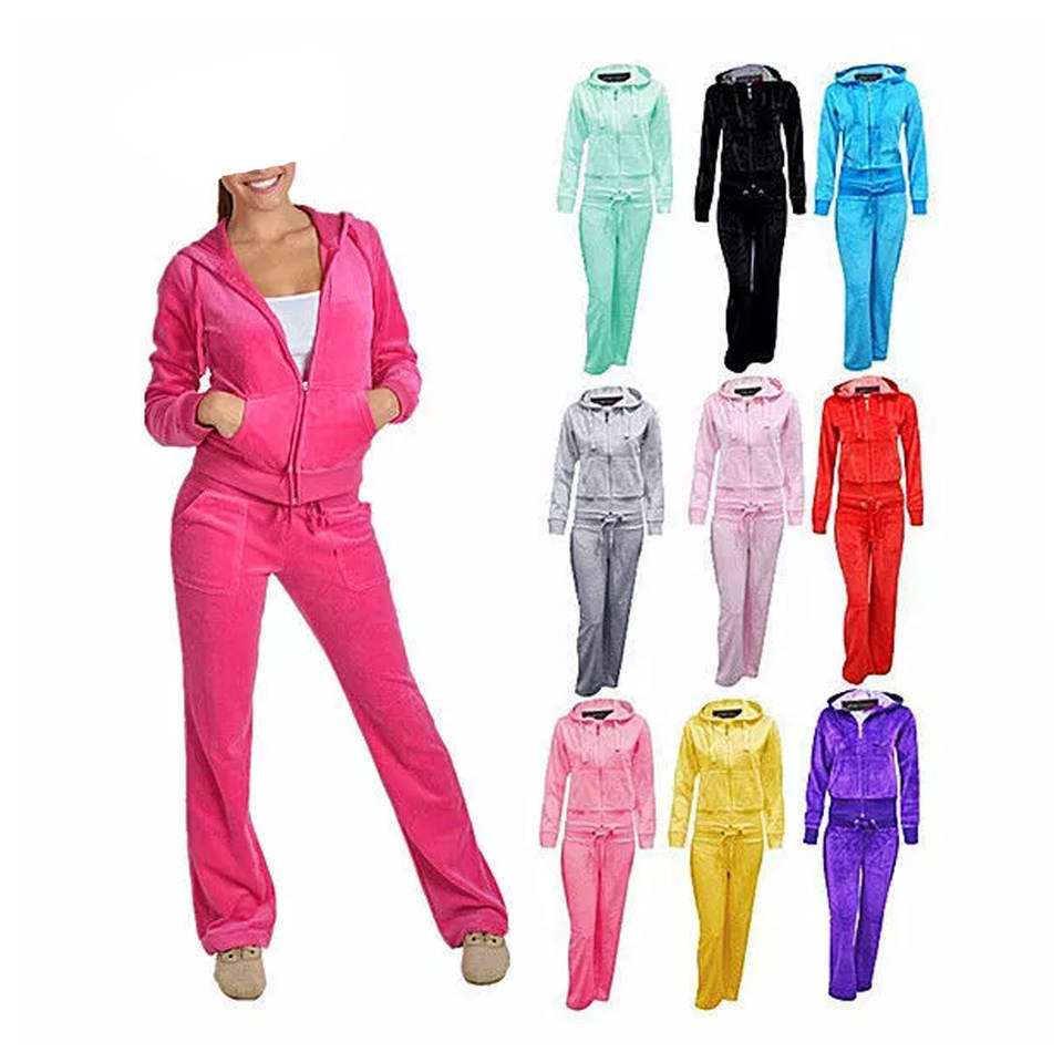 ชุดวอร์มผ้ากำมะหยี่ประดับโลโก้คริสตัลหลากสีสำหรับผู้หญิง ชุดลำลองแฟชั่นสวมใส่สบาย