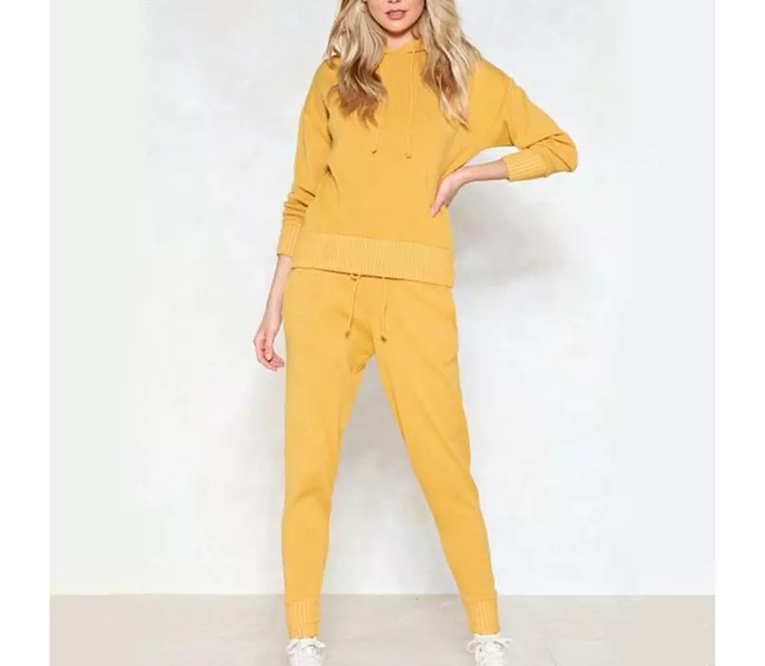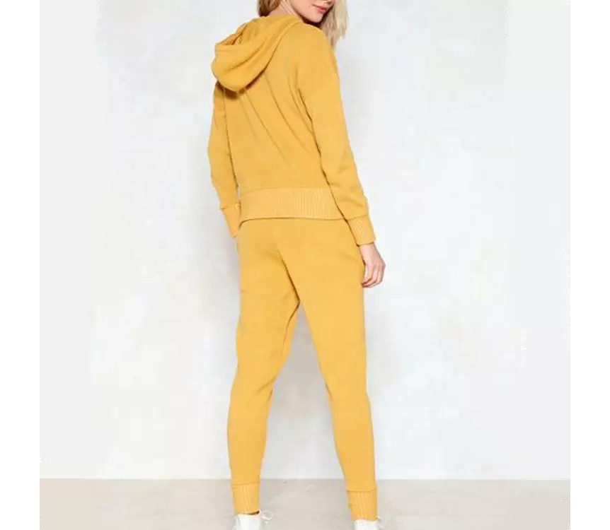 ชุดวอร์มแขนยาวมีฮู้ดสำหรับผู้หญิง,ชุดวอร์มกางเกงผ้าฝ้ายทอแบบออร์แกนิก French Terry แบบสวมศีรษะใส่ออกกำลังกาย