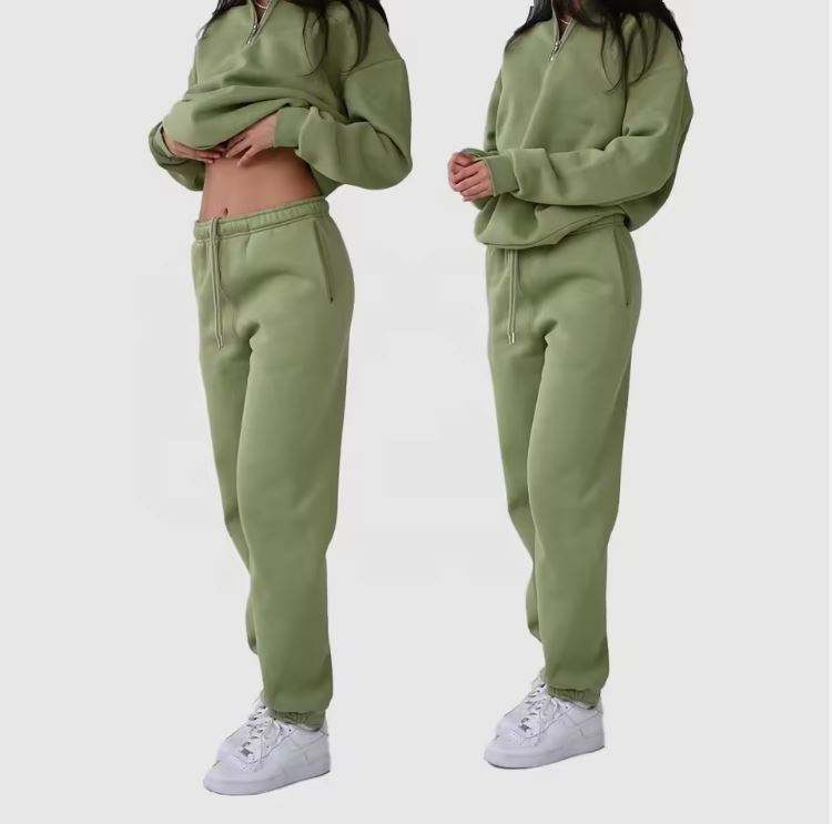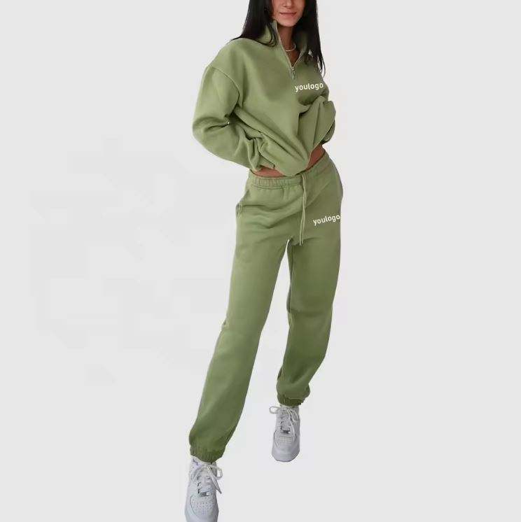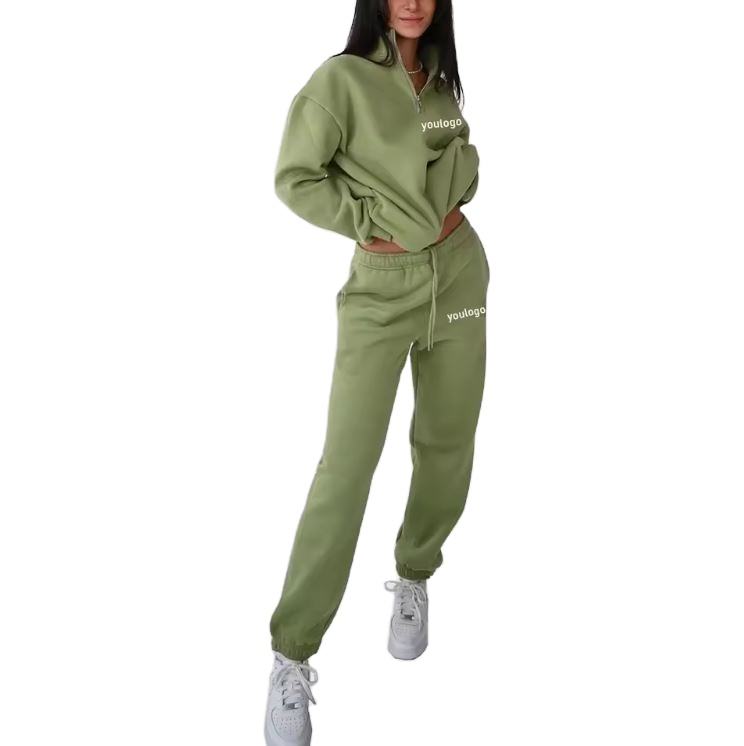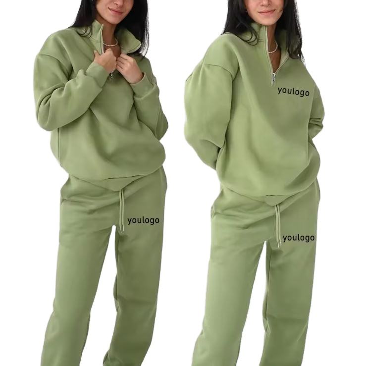 ชุดวอร์มสำหรับผู้หญิงชุดวอร์มสองชิ้นเสื้อแจ็คเก็ตซิปครึ่งขนแกะพิมพ์ลายแบบกำหนดเอง
