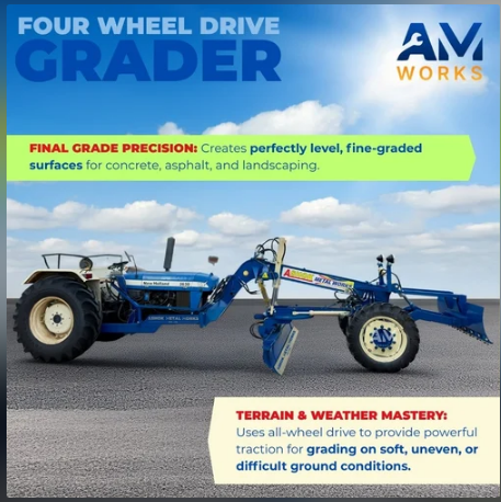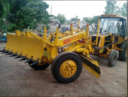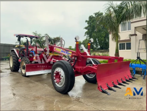 อุปกรณ์เกรดเดอร์ติดรถแทรกเตอร์ยี่ห้อ Ashok ขนาดใบมีด 432 มม. ความยาว 3050 มม. ระบบไฮดรอลิกเต็มรูปแบบ พร้อมวาล์วควบคุม 8 คันโยก สำหรับงานถนน