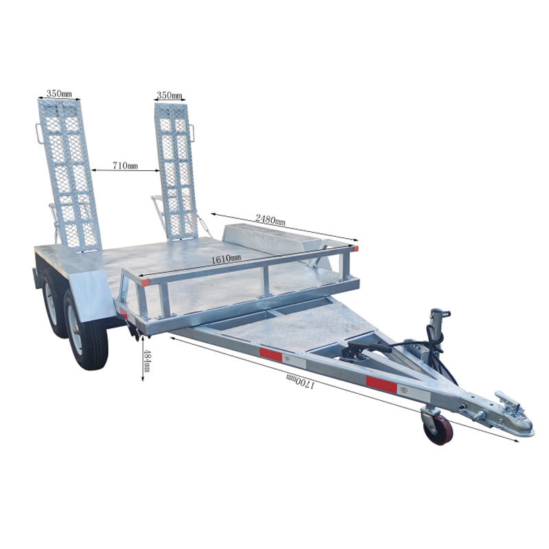 Tractor Trailer Transport Trailer for Excavator ATV Off-road Vehicle Lift 4 Wheel 1500kg Load