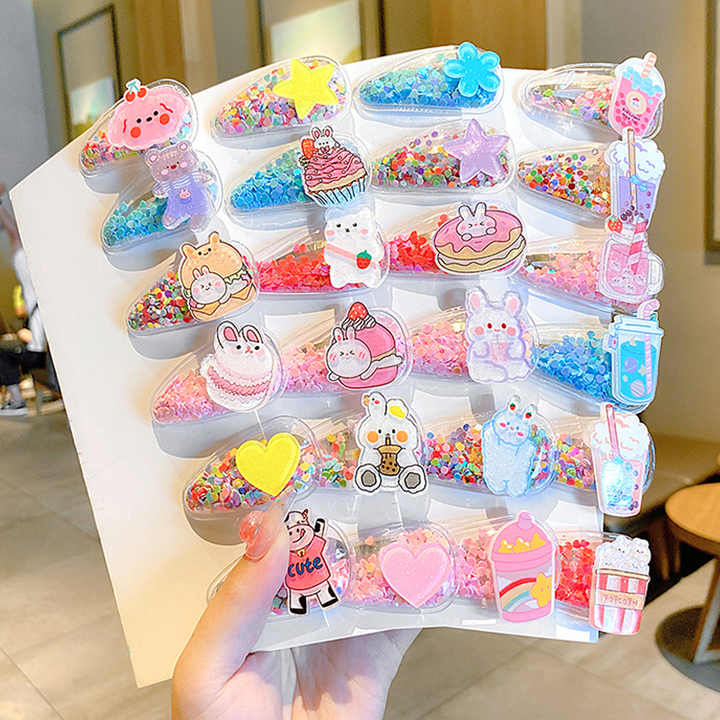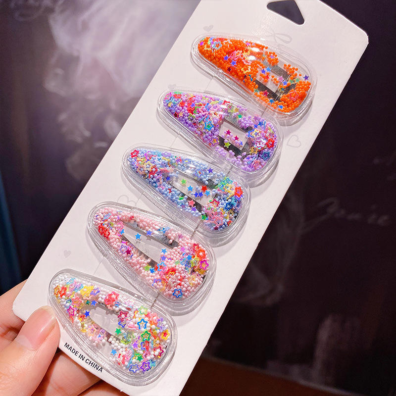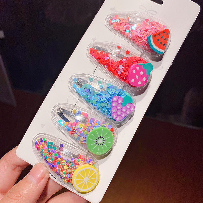 Tracy & herry 5ชิ้น/เซ็ตหลากสีทรายดูดโปร่งใสเด็กหญิงผลไม้เลื่อมแวว BB คลิปของขวัญ