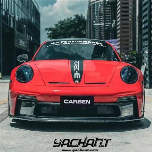 การประกันการค้าแห้งส่วนคาร์บอนไฟเบอร์กันชนหน้าด้วยลิปพอดีสำหรับ2019-2022 911 992.1 Carrera & S & 4 & 4S GT3สไตล์