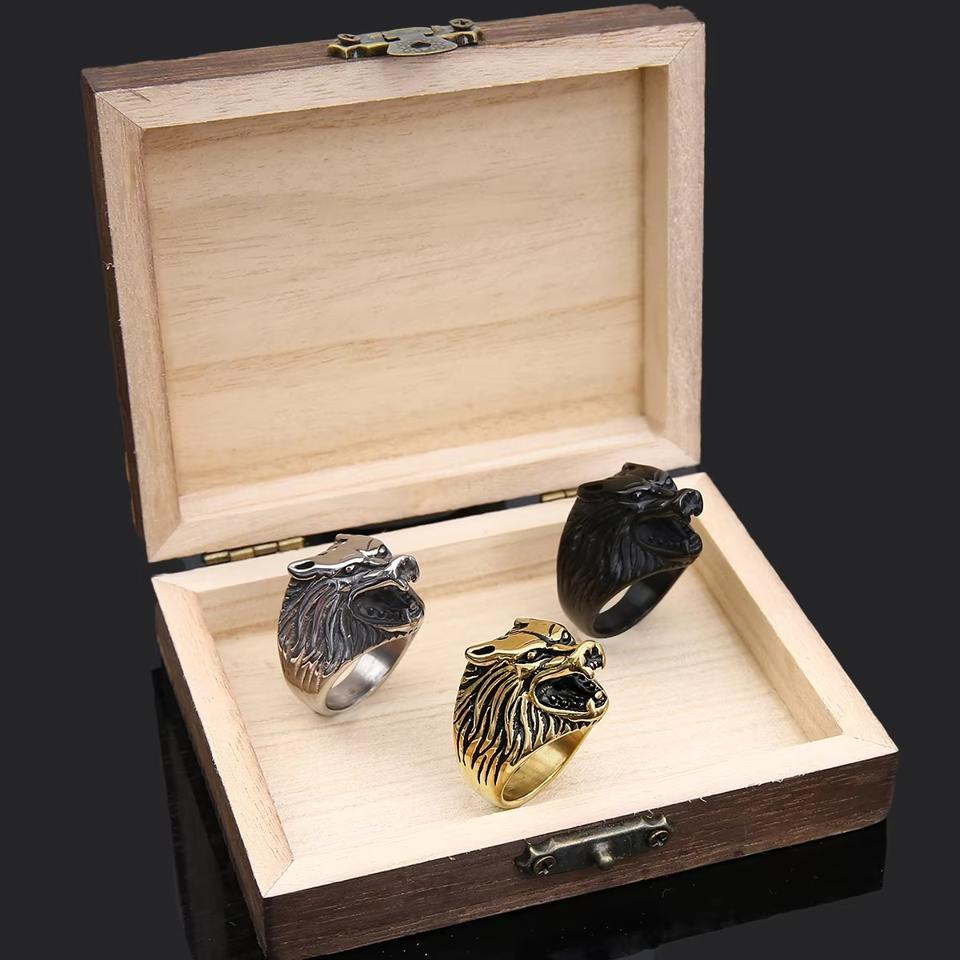 แหวนผู้ชายรูปไข่หมาป่าสีเทาเสี้ยวเงิน